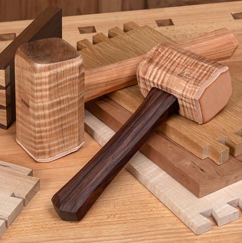 Tags: Blue Spruce, Bolivian rosewood handle, craftsmanship, curly maple head, durable mallet, fine woodworking tool, hand tool, joinery tool, large rectangular mallet, leather-faced mallet, precision striking, premium mallet, woodworking mallet
