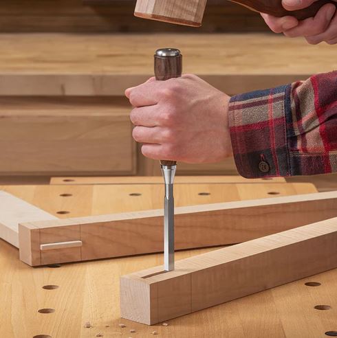 Tags: Blue Spruce, craftsmanship, curly maple handle, deep cutting chisel, durable chisel, fine woodworking, hand tool, high-quality woodworking tool, joinery tool, Mortise Chisel, precision chisel, premium chisel, woodworking tool