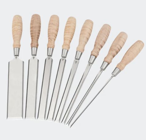 The Blue Spruce 8-Piece Paring Chisel Set is a premium collection of precision-ground chisels designed for delicate joinery and fine detail work. Crafted for control, balance, and edge retention, this set is essential for serious woodworkers.