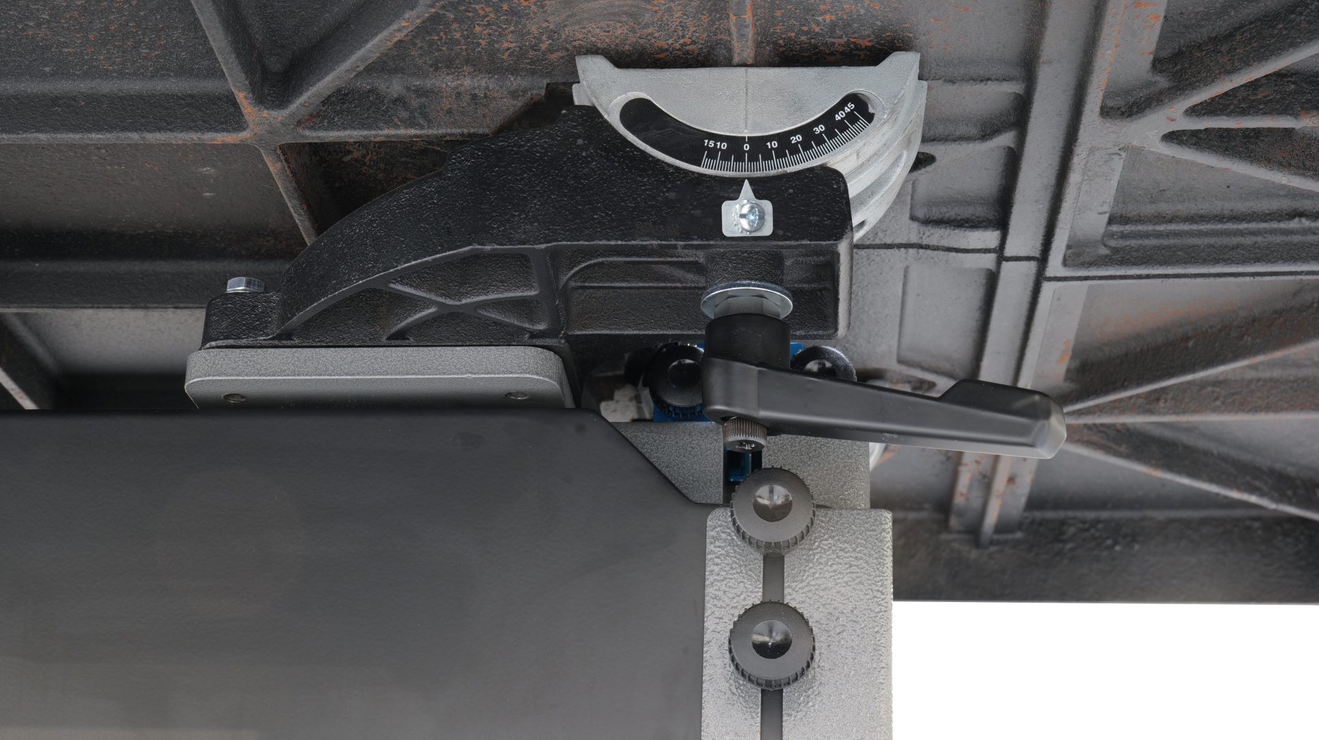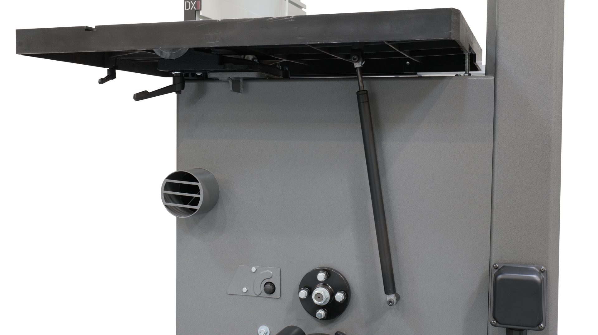 ● Air Strut Assist makes it easy to move the massive cast-iron table during tilted operation.
