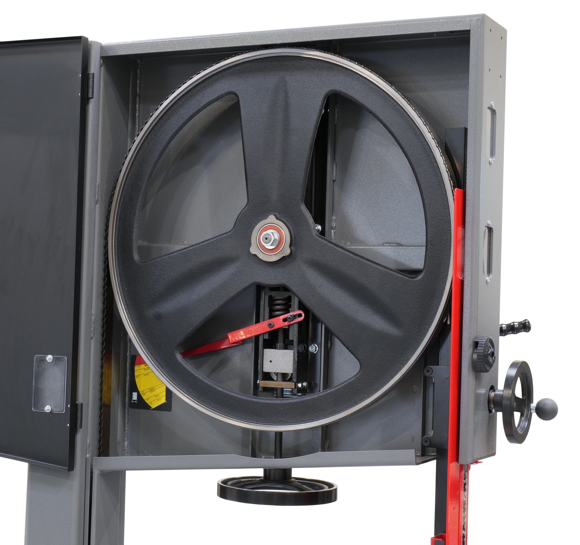 ● 24” Cast-Iron Flywheels provide the inertia to drive the blade down through tall cuts.