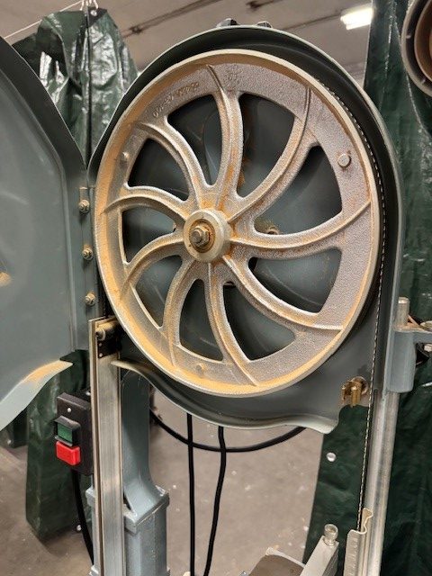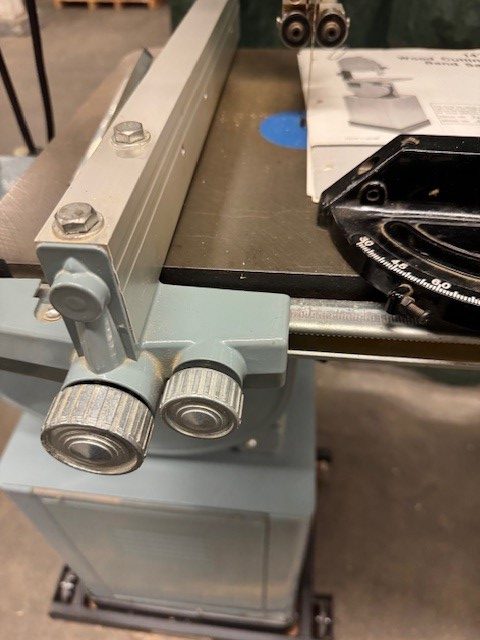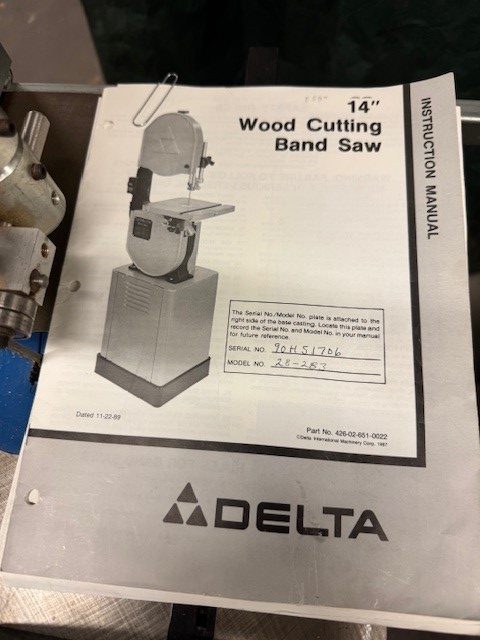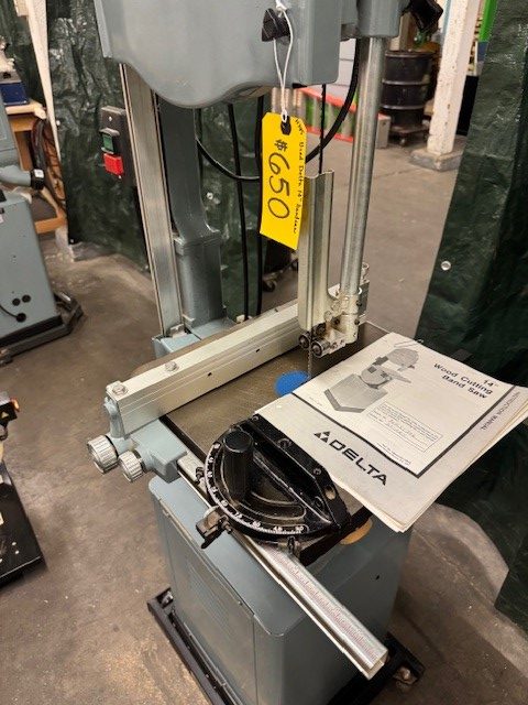 Used Delta 14″ bandsaw w/rip fence, riser block & mobile base