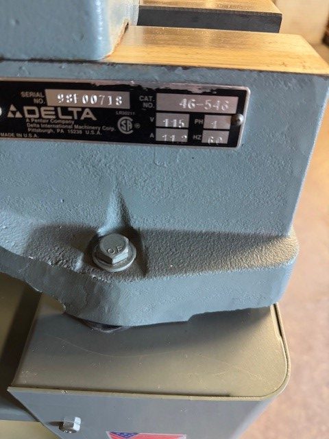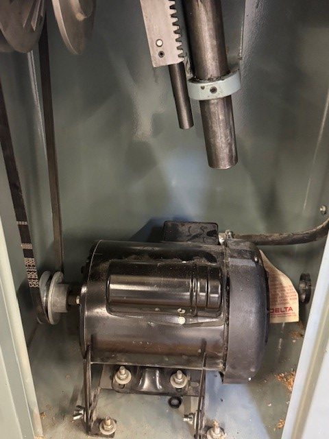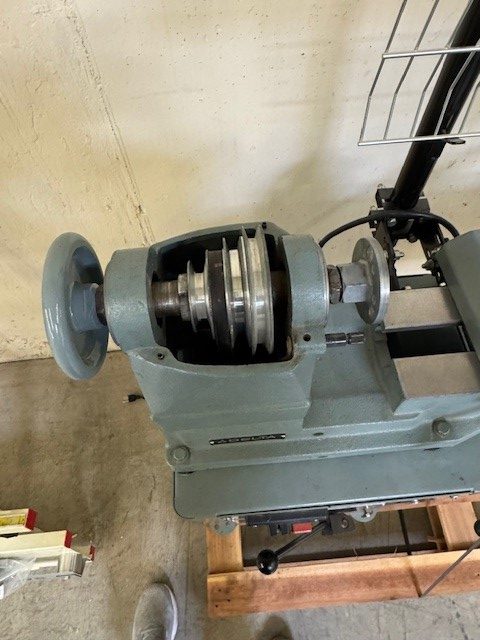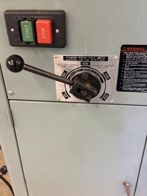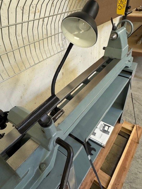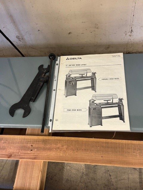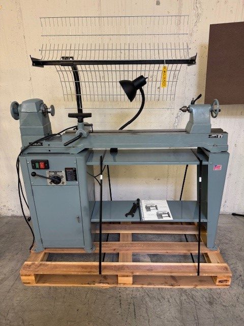 Used Delta 46-546 12″ x 36″ VS wood lathe with cabinet stand, turning shield & light