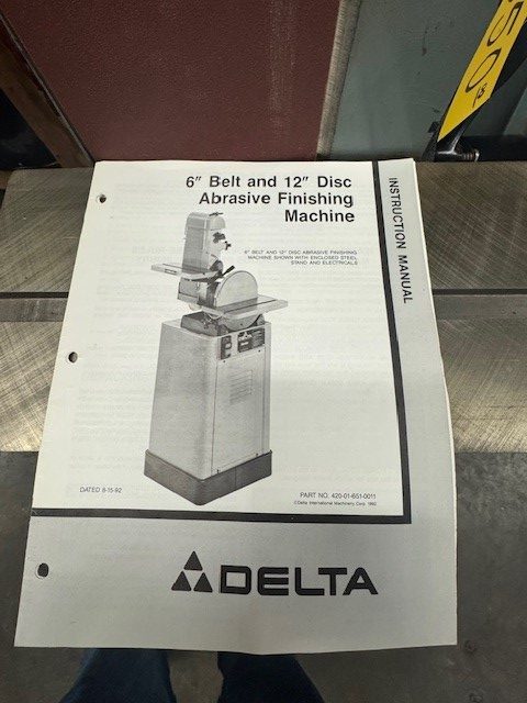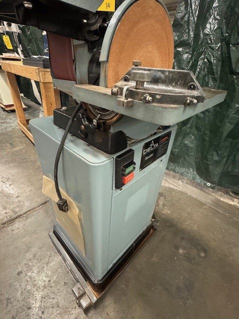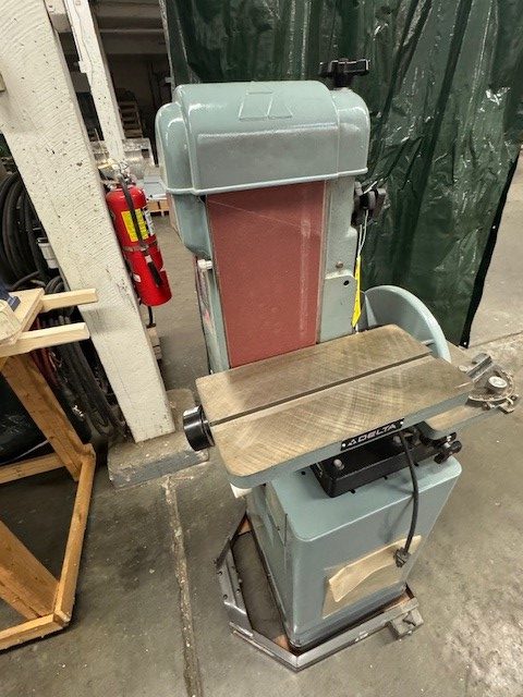 Used Delta 6″ belt x 12″ disc sander w/ cabinet stand and mobile base