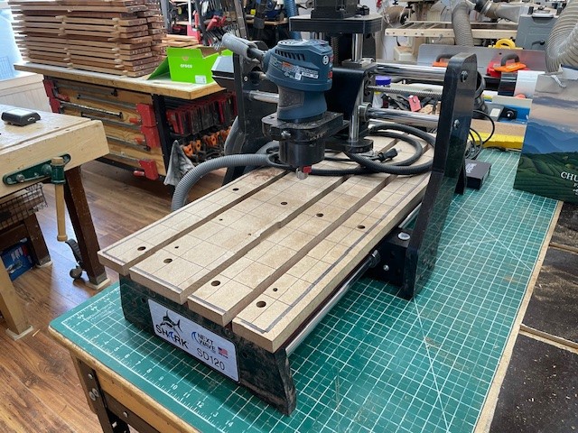 Used Next Wave SD120 CNC 12″ x 25″ x 4″ with 2 Bosch routers, mini 4th axis kit & spoilboards