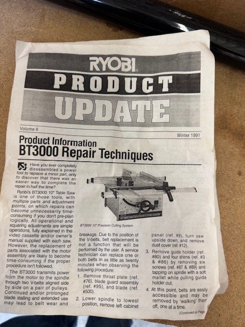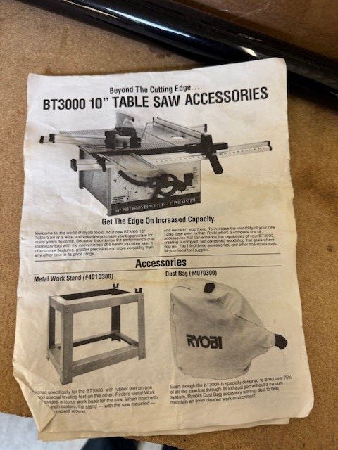Used Ryobi BT3000 tablesaw with sliding table & rolling stand