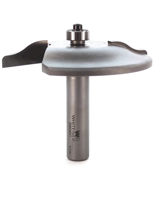 Our largest Raised Panel profiles manufactured with two cutting wings and a 3-1/4″ diameter. This bit can be used with the full size Stile and Rail bits for cabinet or furniture making. Designed with a 1/2″ ball bearing guide.